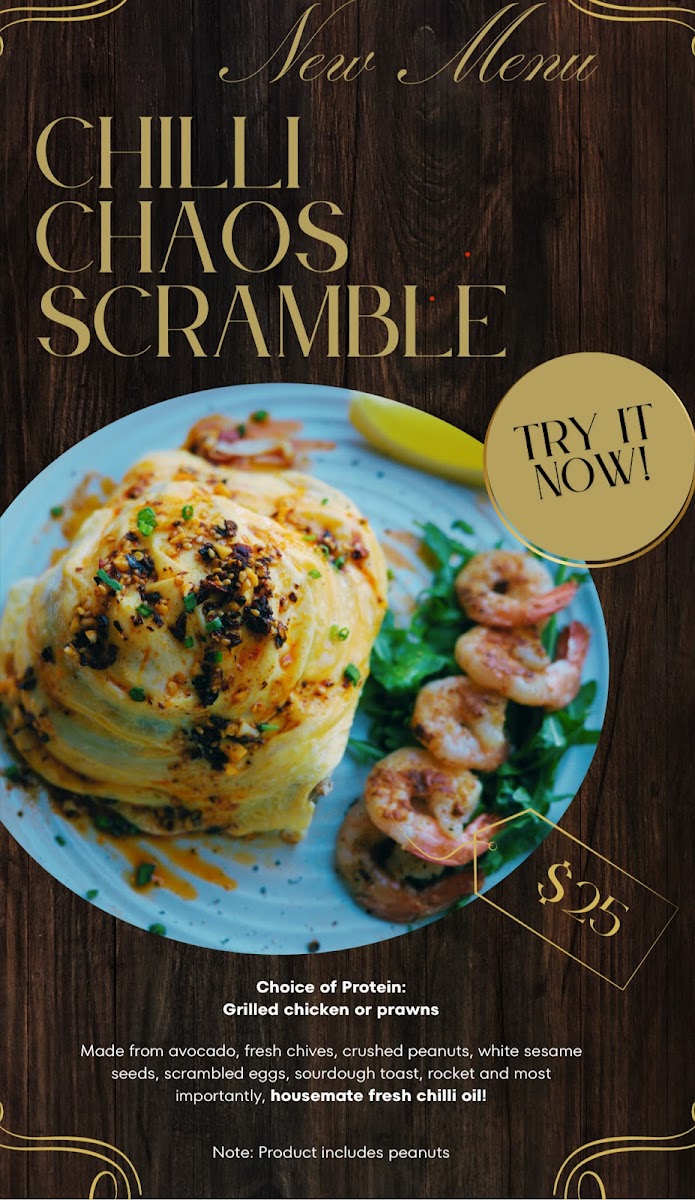 Fried egg, streaky bacon, smashed avocado, hash brown, smokey tomato relish and house made chilli basil mayonnaise.